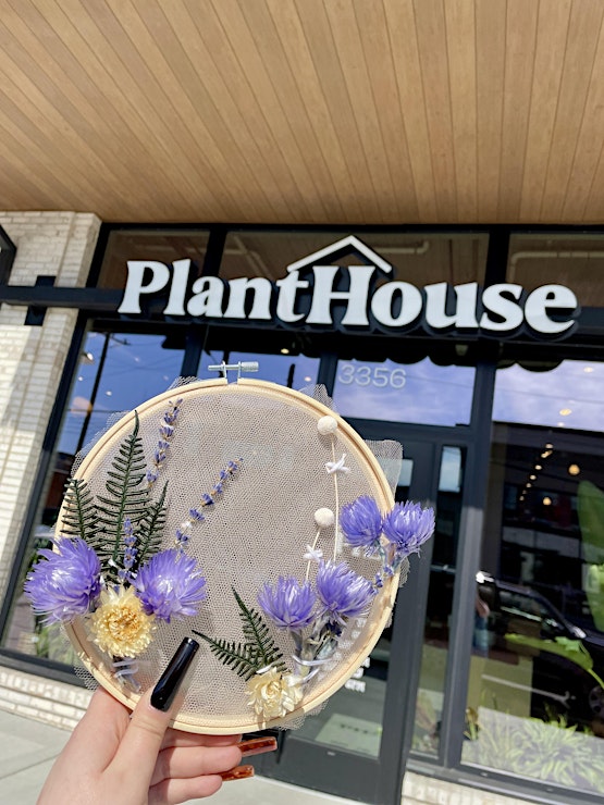 Dive into the world of textile art as you select from a curated collection of air plants and dried florals, then learn the art of hand stitching with the guidance of the PlantHouse crew. Secure your botanical beauties to an embroidery hoop and create a stunning piece of wall art or a charming shelf display to brighten up your home.