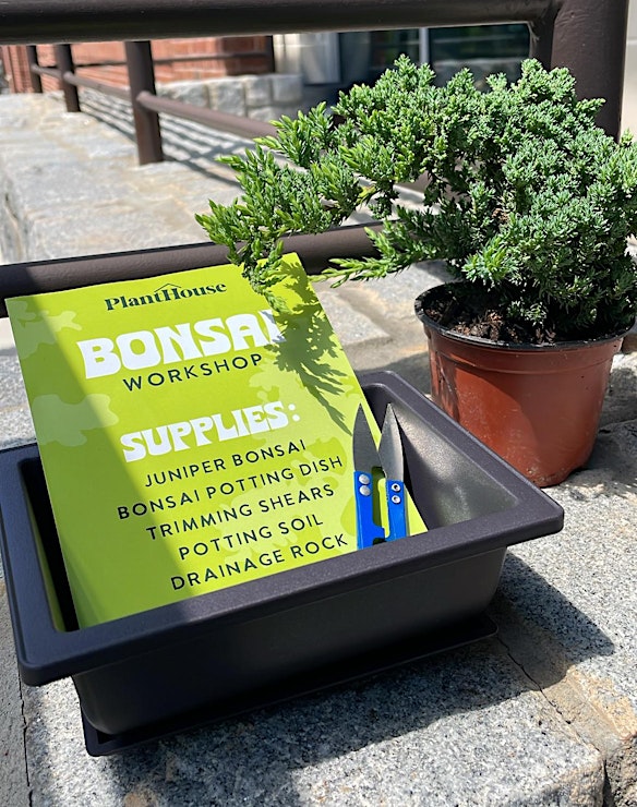 Indulge your senses and cultivate your creativity at our Bonsai Workshop! Join us for an evening of bonsai planting and delightful libations as you select your very own bonsai tree to plant into a vessel. Under the expert guidance of the PlantHouse crew, you'll learn the art of bonsai planting, including rock soil and planting techniques, as well as valuable care tips to help your bonsai thrive.