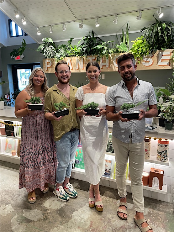 Indulge your senses and cultivate your creativity at our Boozy Bonsai Workshop! Join us for an evening of bonsai planting and delightful libations as you select your very own bonsai tree to plant into a vessel. Under the expert guidance of the PlantHouse crew, you'll learn the art of bonsai planting, including rock soil and planting techniques, as well as valuable care tips to help your bonsai thrive.