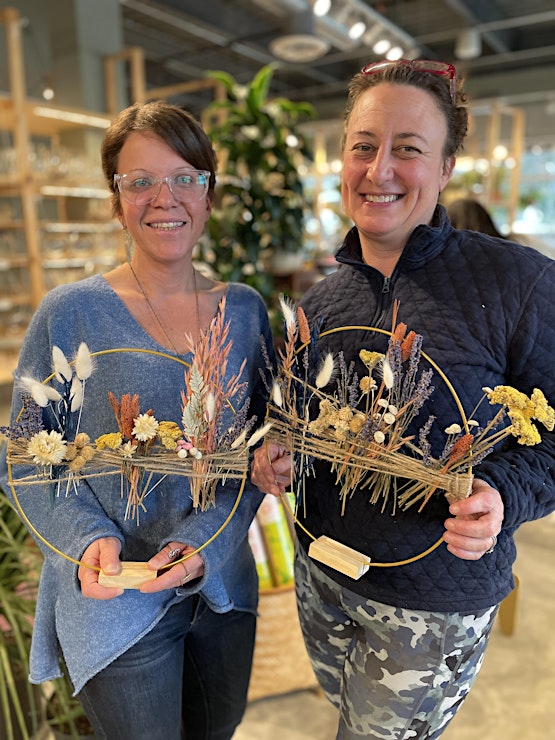 Select from a variety of beautiful dried florals and learn how to weave them onto a gold hoop with the guidance of our PlantHouse crew. Whether you hang it on your wall or display it on a bookshelf, this elegant project will add a touch of natural beauty to any space.