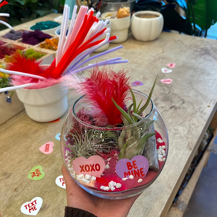 Grab your besties and build a Valentine-themed air plant terrarium at our Galentines Workshop!