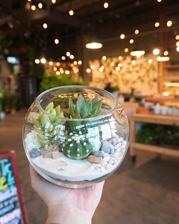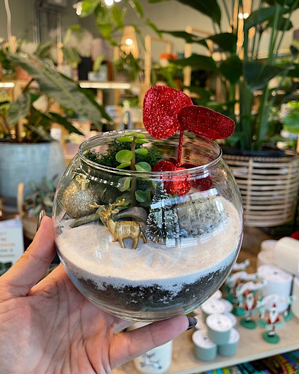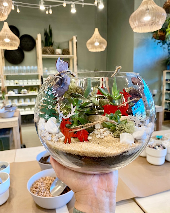Enjoy a relaxed, instructor-led workshop where you'll learn basic plant care and design a holiday-themed terrarium that’s perfect for gifting or decorating your space. All materials included, just bring your creativity!