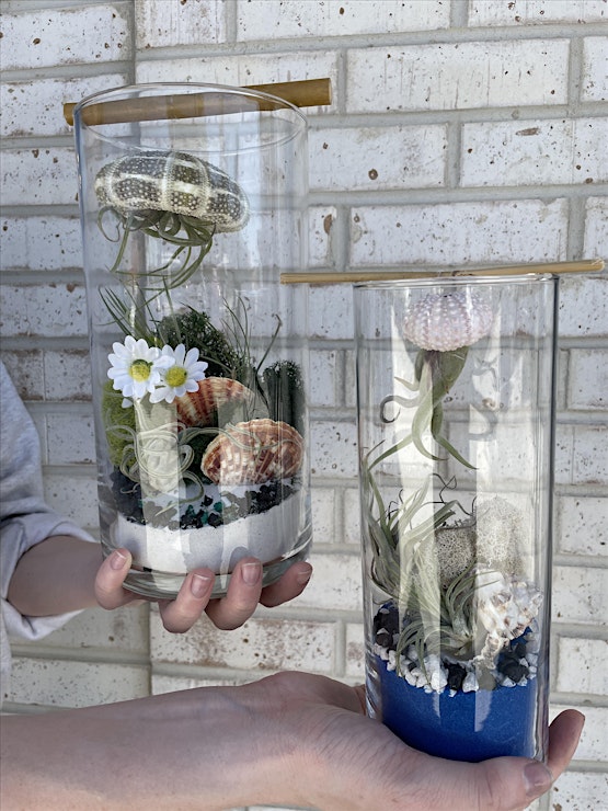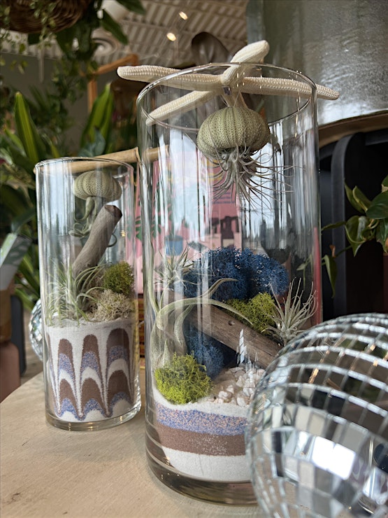 Dive into creativity with our Jellyfish Terrarium Workshop! Join us for a mesmerizing experience where you'll craft your very own underwater world using rocks, sand, air plants, and an array of decorative pieces. Let your imagination swim wild as you design a unique terrarium to adorn your space.