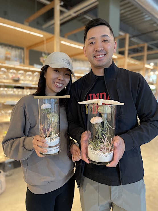 Dive into creativity with our Jellyfish Terrarium Workshop! Join us for a mesmerizing experience where you'll craft your very own underwater world using rocks, sand, air plants, and an array of decorative pieces. Let your imagination swim wild as you design a unique terrarium to adorn your space.