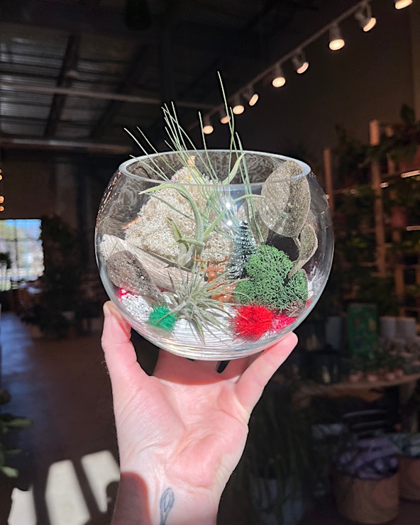 Bring the kids in for a holly jolly time at our Kids Holiday Workshop! This special seasonal session lets children build their own 6” glass air plant terrarium, complete with colorful layers and a variety of fun, holiday-themed decor.