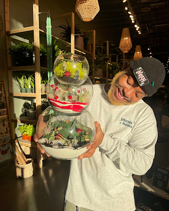 Bring the kids in for a holly jolly time at our Kids Holiday Workshop! This special seasonal session lets children build their own 6” glass air plant terrarium, complete with colorful layers and a variety of fun, holiday-themed decor.