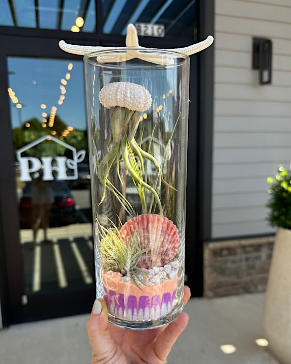 Make a splash at our Kids Jellyfish Terrarium Workshop! Young ocean explorers will build their own underwater-inspired terrariums using vibrant air plants, a smaller 3x9 inch cylinder, and playful sea creature figurines. From jellyfish to starfish, they'll dive into creativity and bring a bit of the ocean home. Perfect for kids who love sea life and hands-on fun!