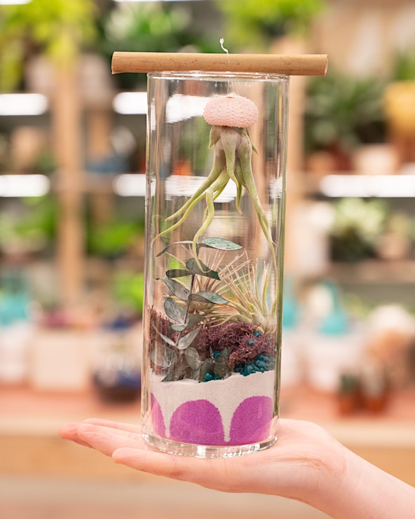Make a splash at our Kids Jellyfish Terrarium Workshop! Young ocean explorers will build their own underwater-inspired terrariums using vibrant air plants, a smaller 3x9 inch cylinder, and playful sea creature figurines. From jellyfish to starfish, they'll dive into creativity and bring a bit of the ocean home. Perfect for kids who love sea life and hands-on fun!