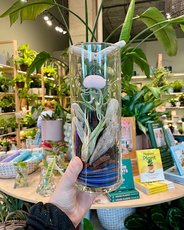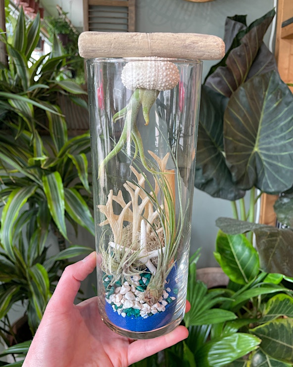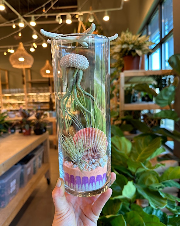 Make a splash at our Kids Jellyfish Terrarium Workshop! Young ocean explorers will build their own underwater-inspired terrariums using vibrant air plants, a smaller 3x9 inch cylinder, and playful sea creature figurines. From jellyfish to starfish, they'll dive into creativity and bring a bit of the ocean home. Perfect for kids who love sea life and hands-on fun!